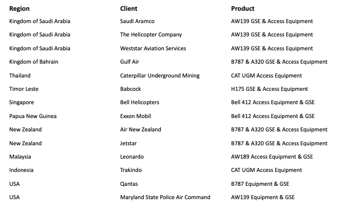 You can find our range of fixed wing, rotary wing and plant access equipment in Oceania, South East Asia, USA the Middle East and Africa.
